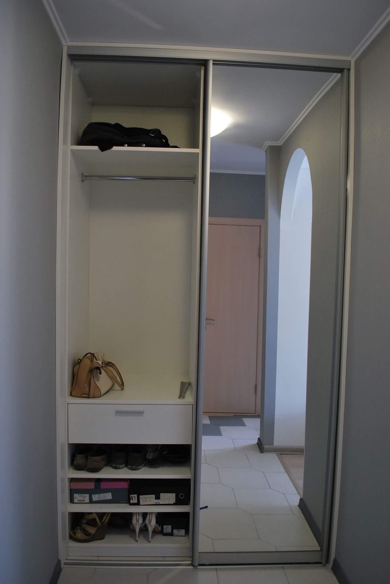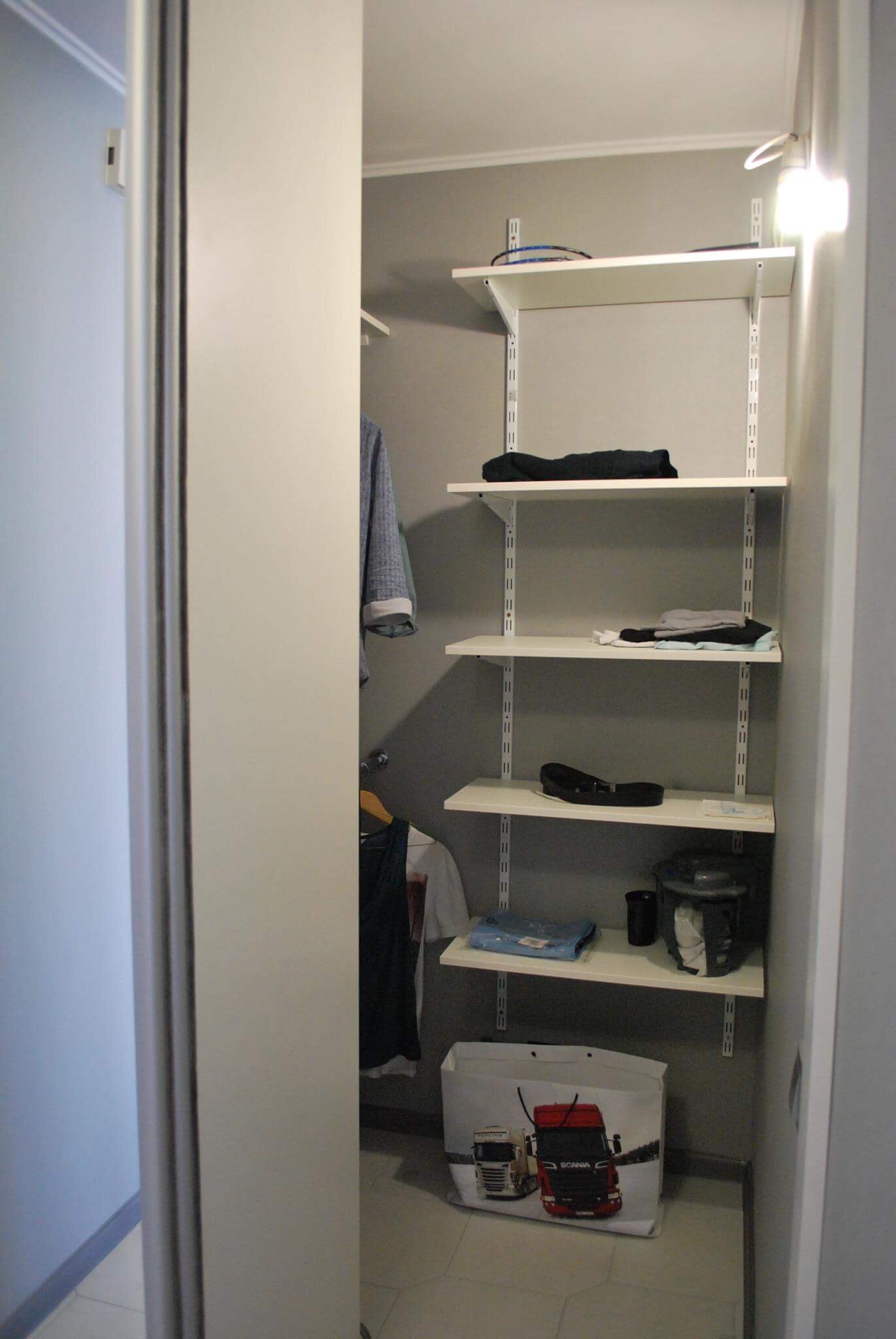 - была снесена кладовка, на ее месте сделали шкаф-купе с гардеробом внутри